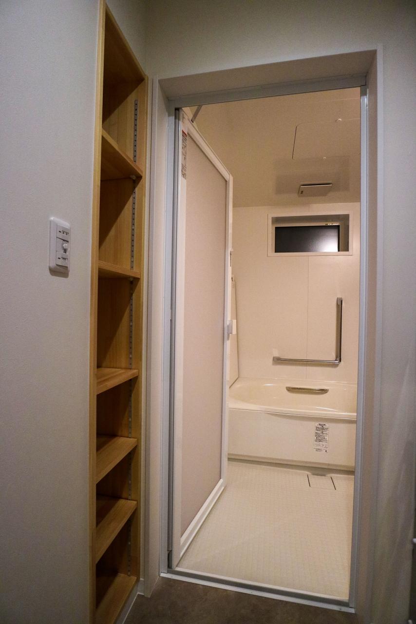お風呂の入り口付近にタオルなど収納できるニッチ